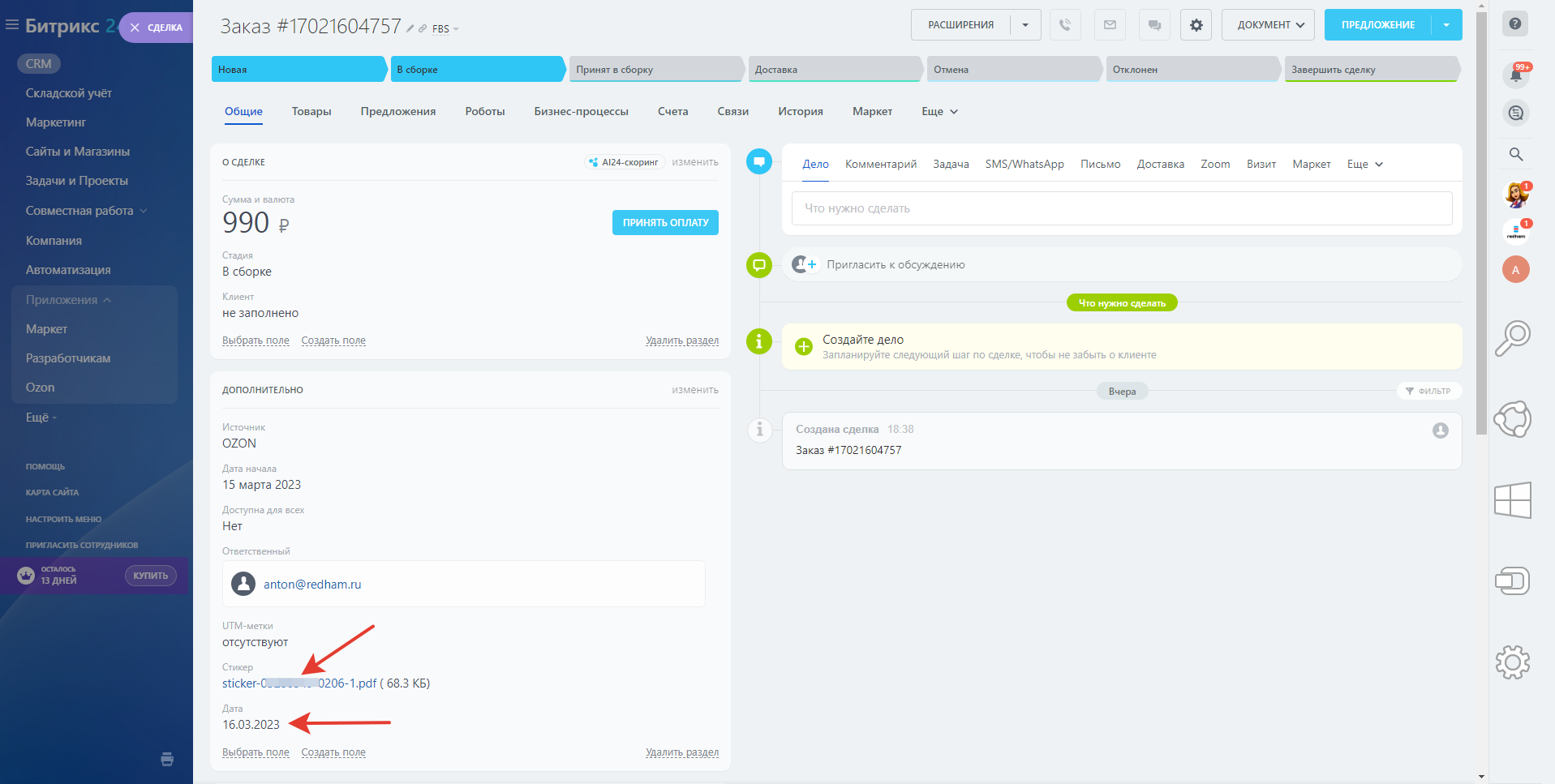 Интеграция с OZON. Работайте с заказами, остатками и статистикой из вашей CRM системы.