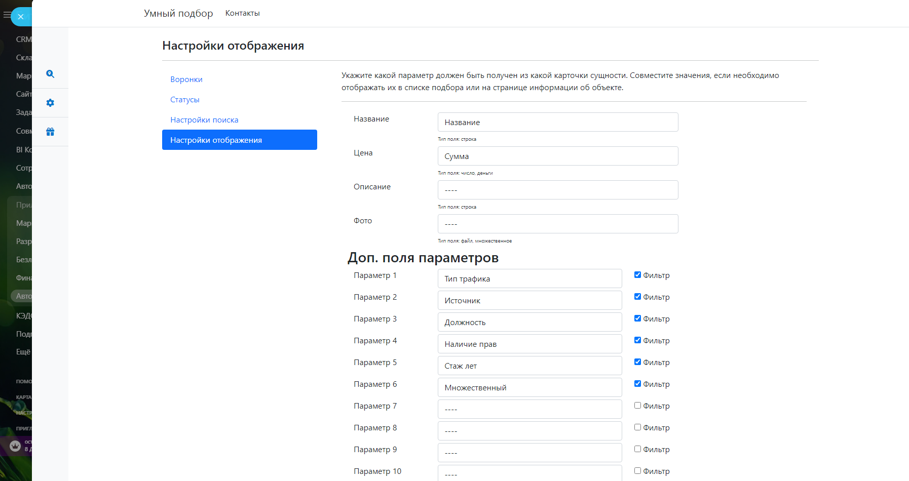 Данное решение позволяет находить подходящие по критериям подбора сущности в вашей CRM системе на основании данных, заполненных в сделке.