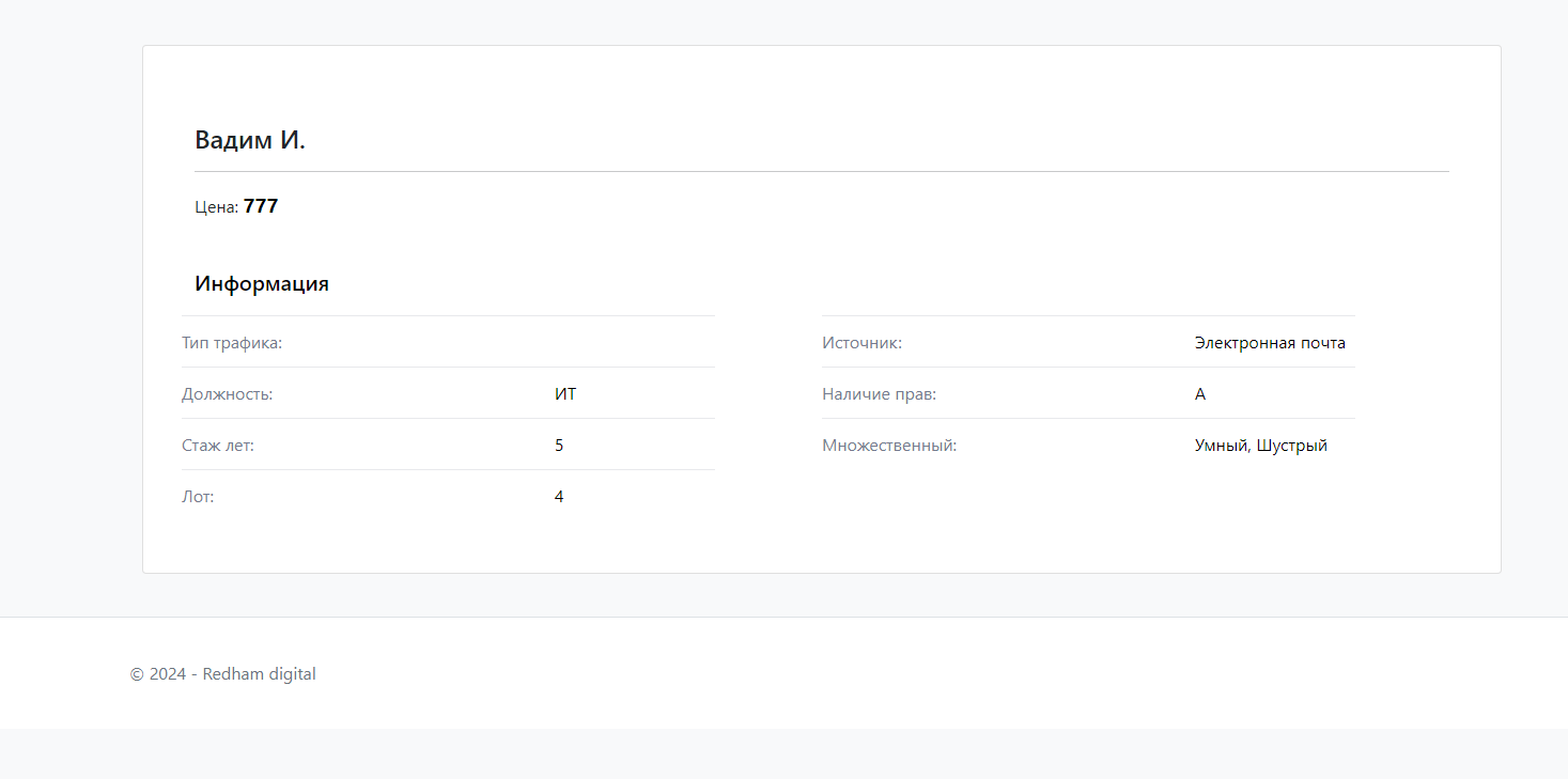 Клиент привлекает HR агентство для поиска кандидата на вакансию "php разработчик". Менеджер заводит сделку, указывая необходимые критерии для подбора кандидата, например: стаж, город, необходимые навыки.