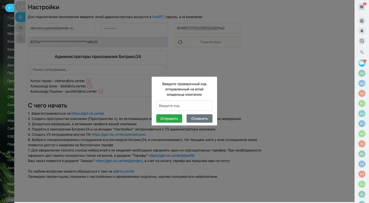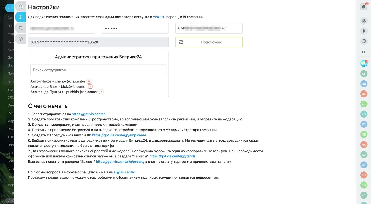 2. Подключить УЗ сотрудников внутри приложения Битрикс24.