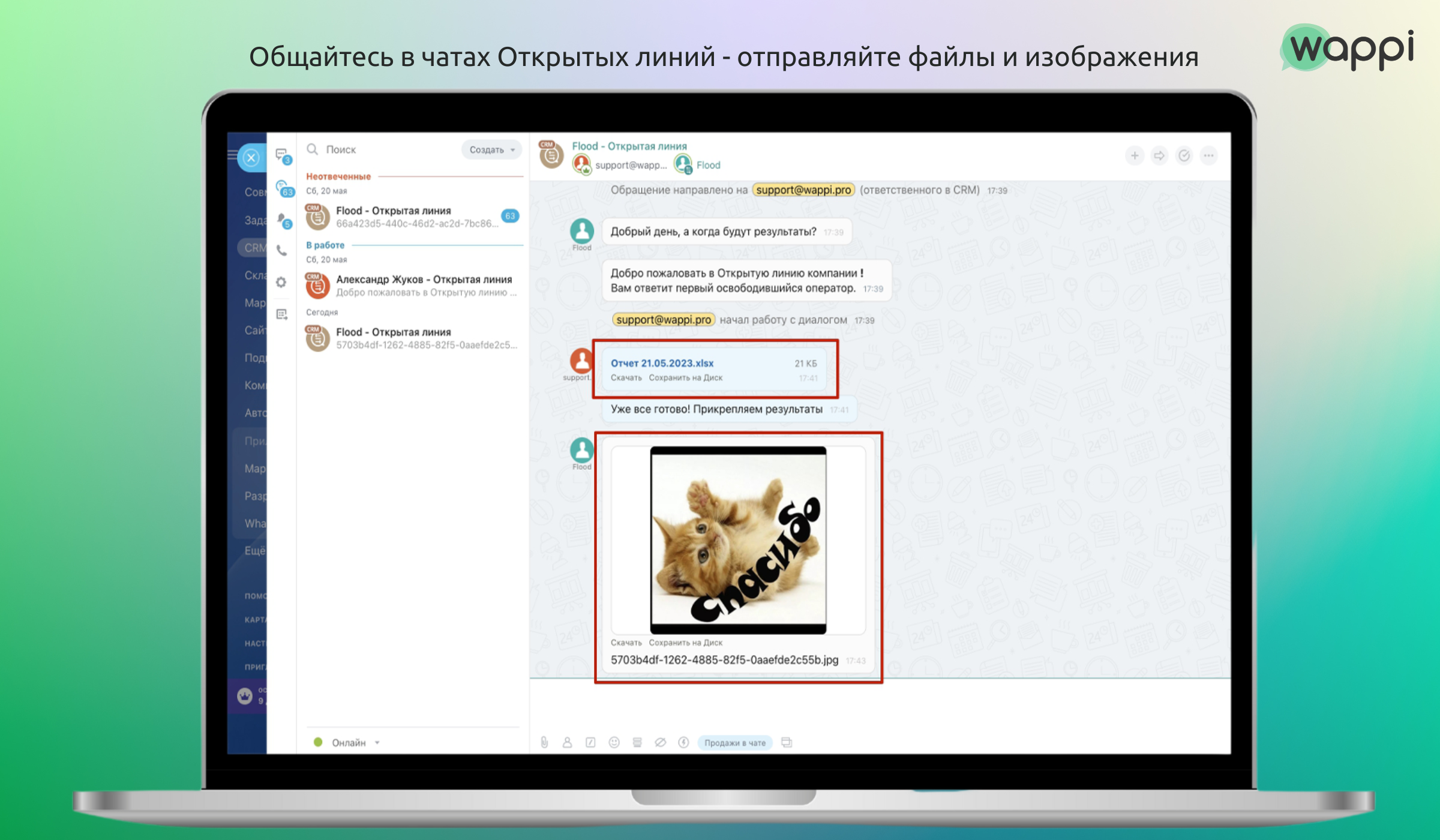 - Полная интеграция с чатами Открытых линий Битрикс24