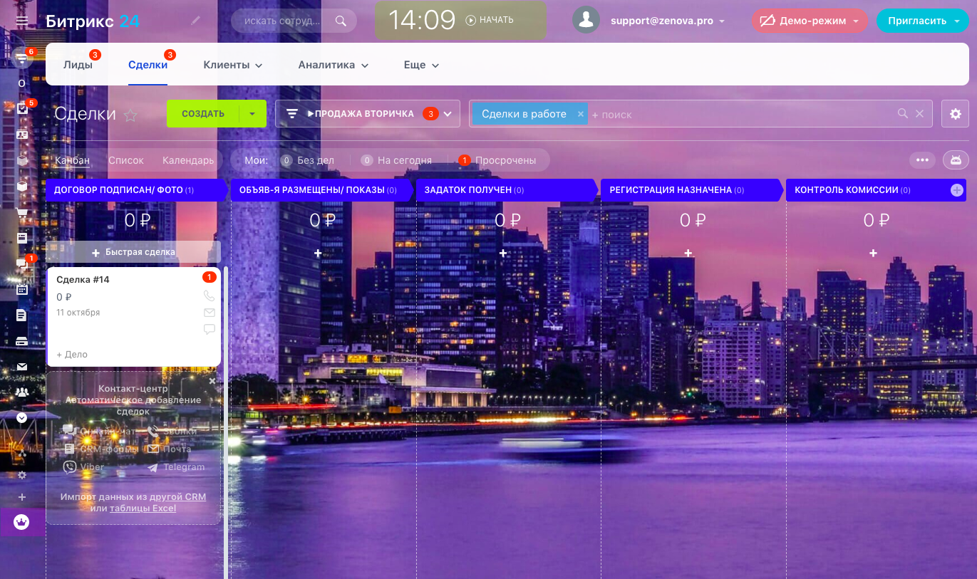 Готовая црм подойдет агентствам недвижимости, риелторским компаниям, которые оказывают услуги по подбору новостроек, продаже и покупке вторичной недвижимости. Готовая CRM включает в себя все последние новинки Битрикс24. Всё готово для работы: нужные поля, данные, воронка лидогенерации, воронка подбора новостроек, воронка подбора вторички, воронка продаж, база данных по объектам.