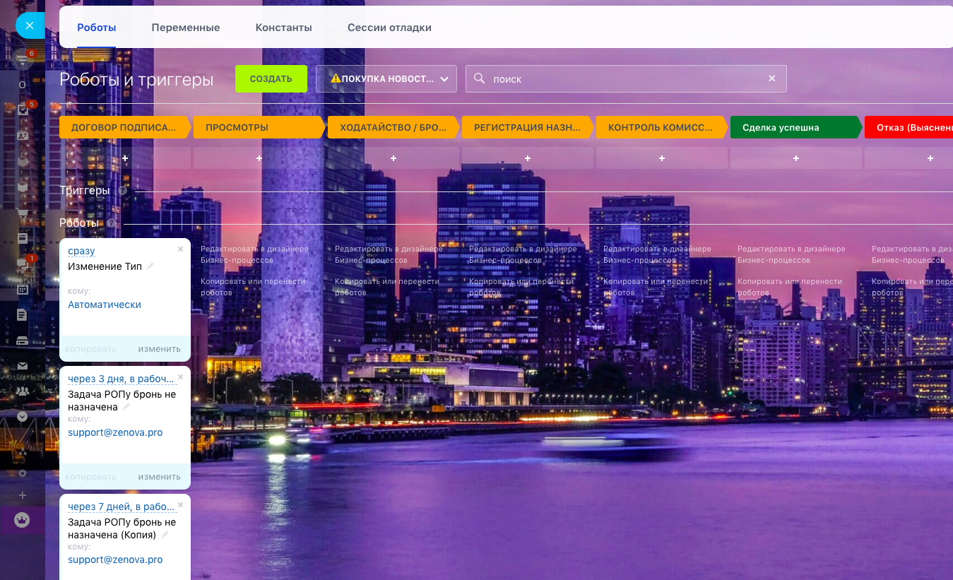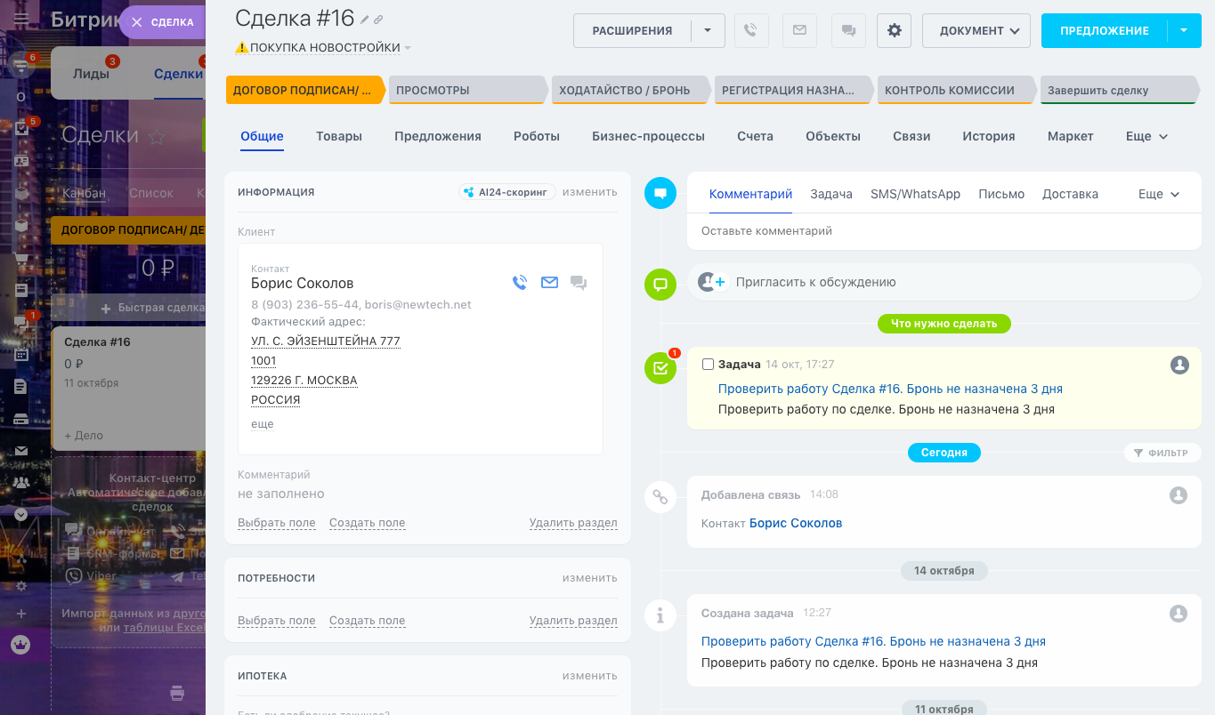 Система автоматически уведомит руководителя отдела, если лид или сделка долго находятся на этапе с предложением проконтролировать работу сотрудника или поменять брокера, не дав таким образом просрочить работу и потерять потенциального клиента.