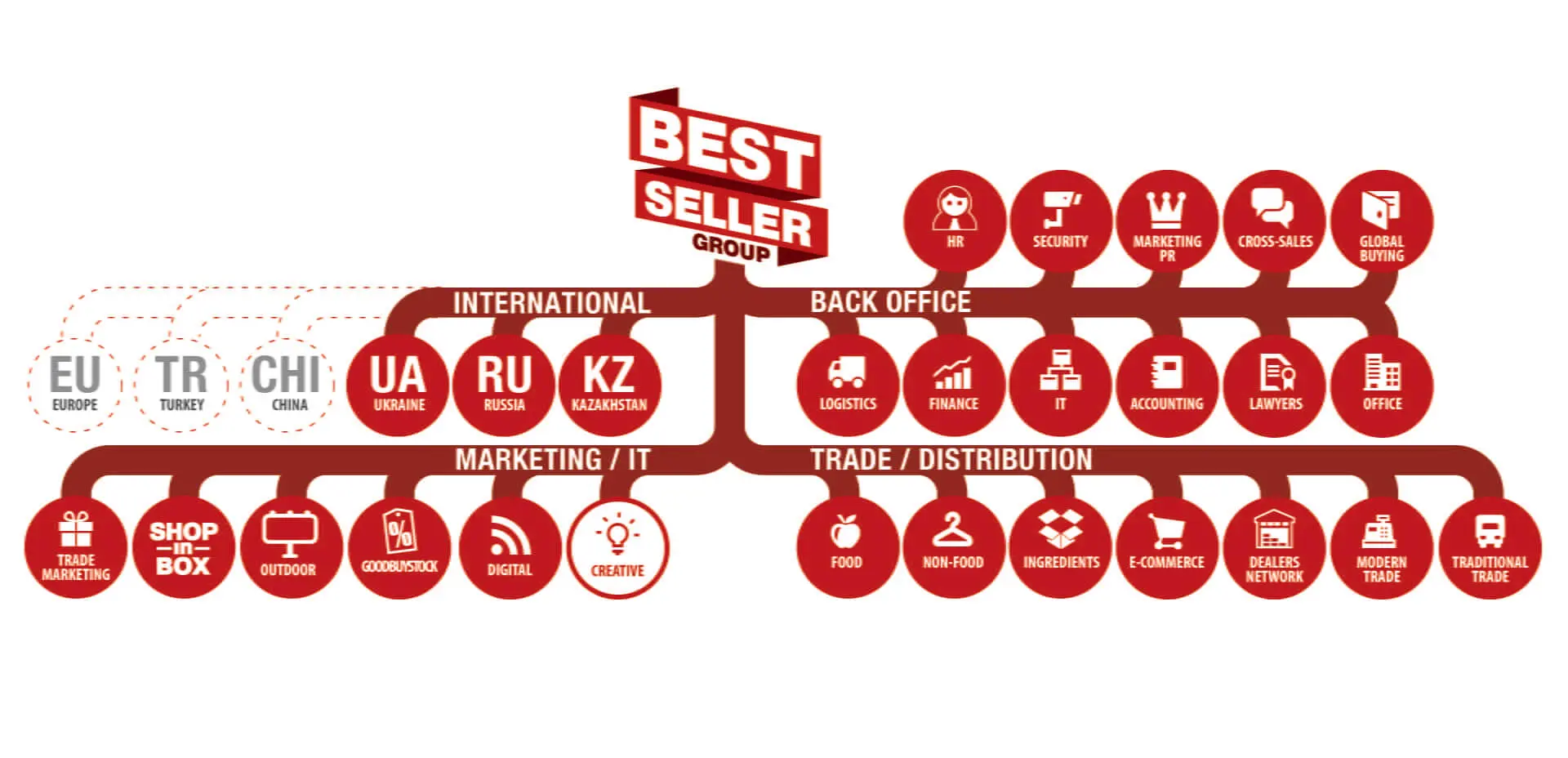 Компания Bestseller начала работу в 2005 году, и до 2011 года она являлась частью крупной торгово-промышленной группы Украины Fozzy Group. Они работали в сегменте B2B. Клиентами Bestseller’а были производители товаров народного потребления и брендодержатели. Представьте, в страну приходит партия какого-либо товара, его нужно распределить по 100 000 торговых точек во всех регионах. Именно такие нетривиальные задачи и решал Bestseller.